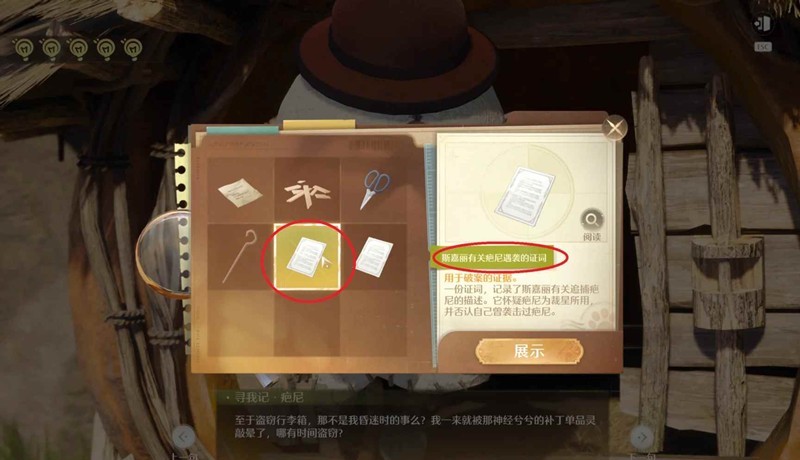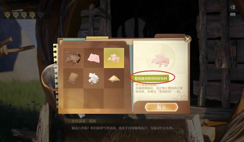 之后和酷妹的对话,选择 发现疤尼时的细节,获得酷妹有关发现昏迷疤尼的证词;