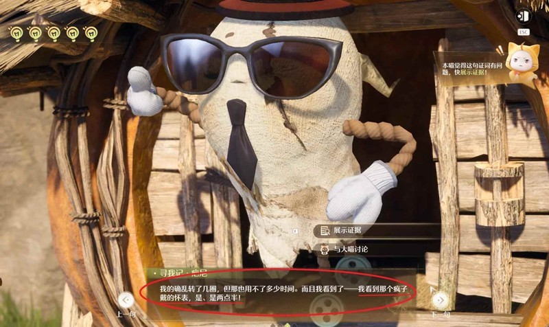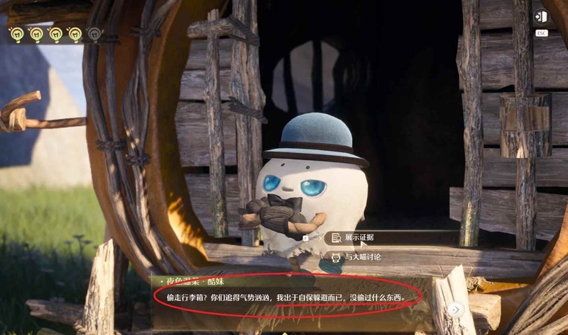 我们点击右边的下一句,看到有“哪有时间盗窃”的句子,就选择展示证据;