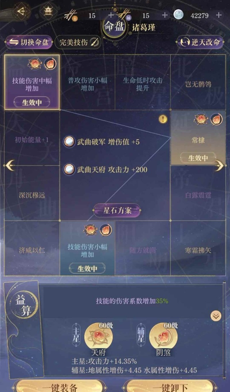 鸡100+17命盘:常技中技小,刚好四星节点,攻击如图。