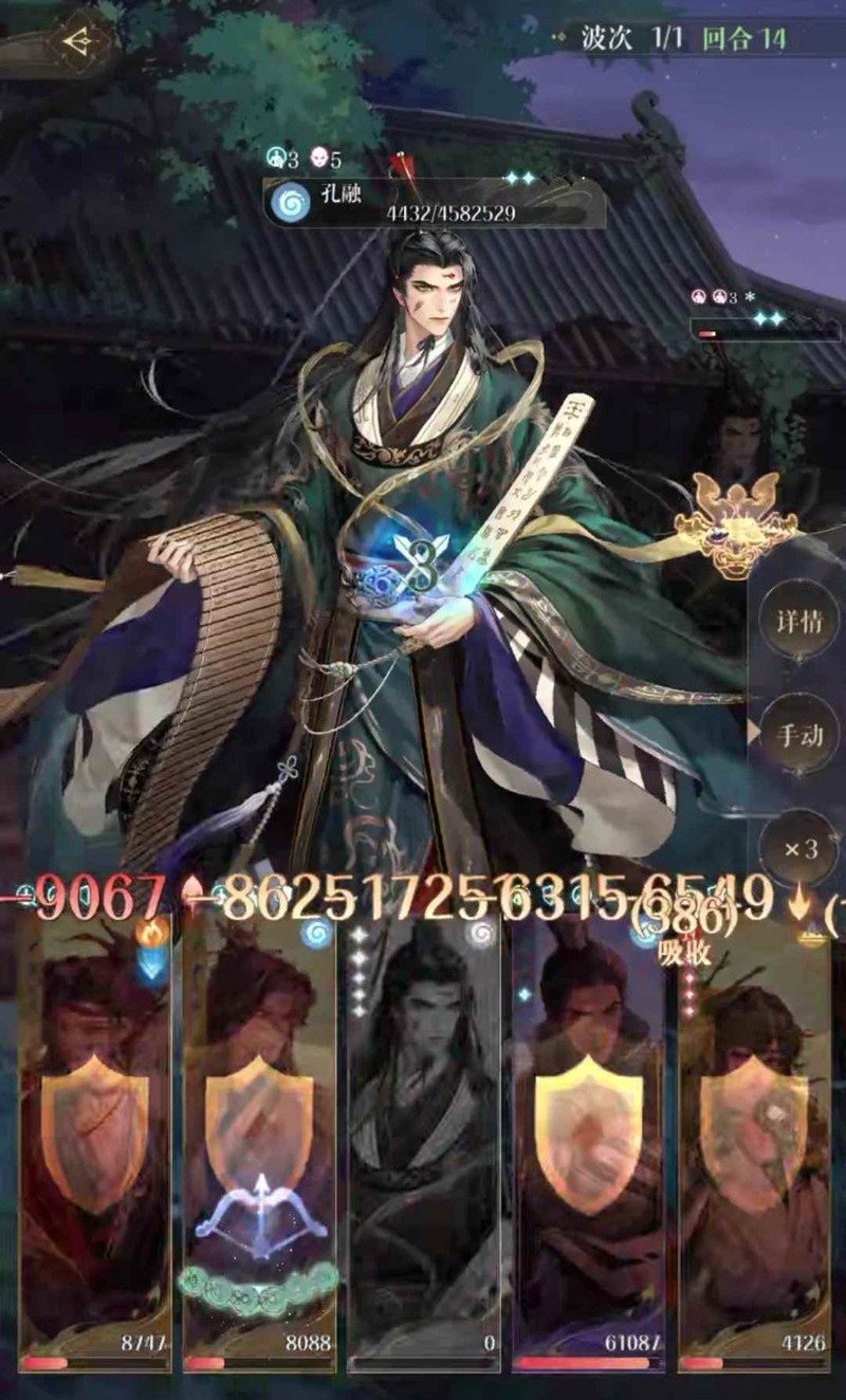 常寒济(只有常济生效)鸡第一个大招后孔融剩317w血,第三次大后就差4k血复活,实在没地方扣了,除非去洗孔融的+4包元防回,感觉也很难洗,还不如继续洗鸡。