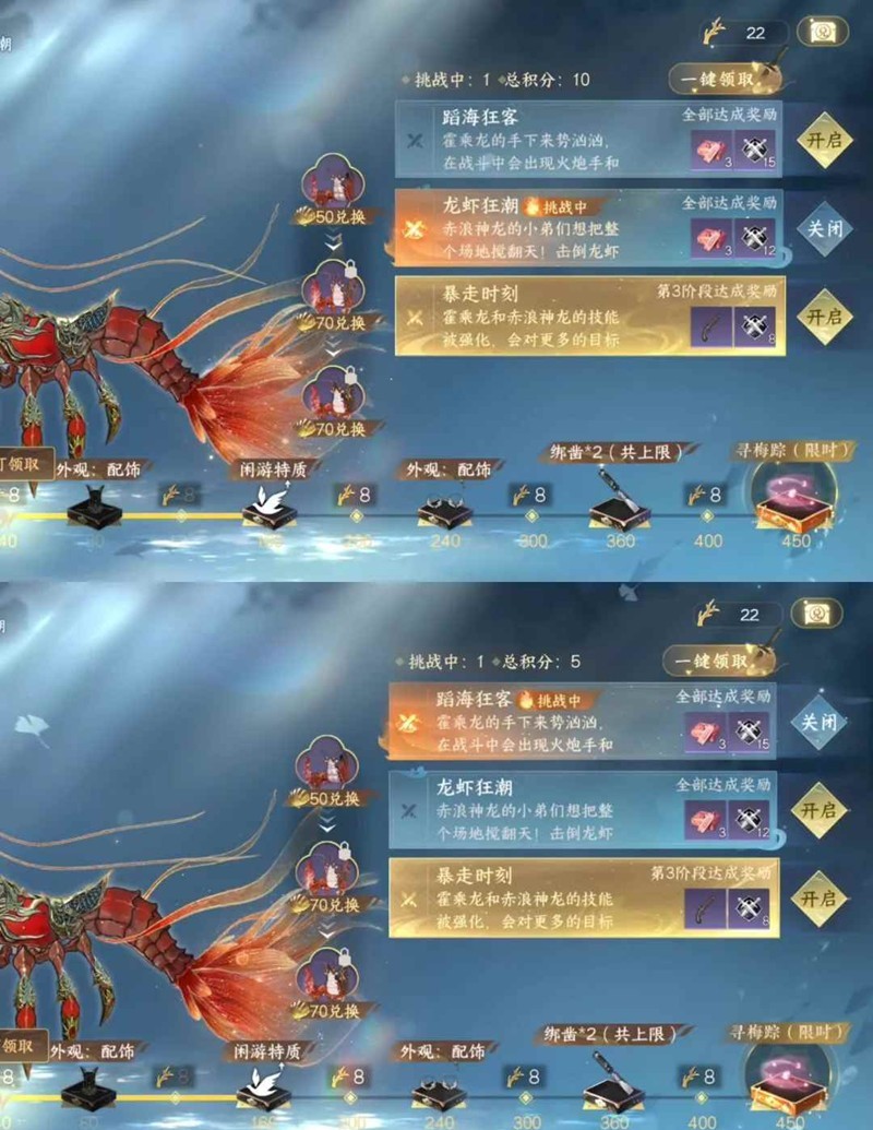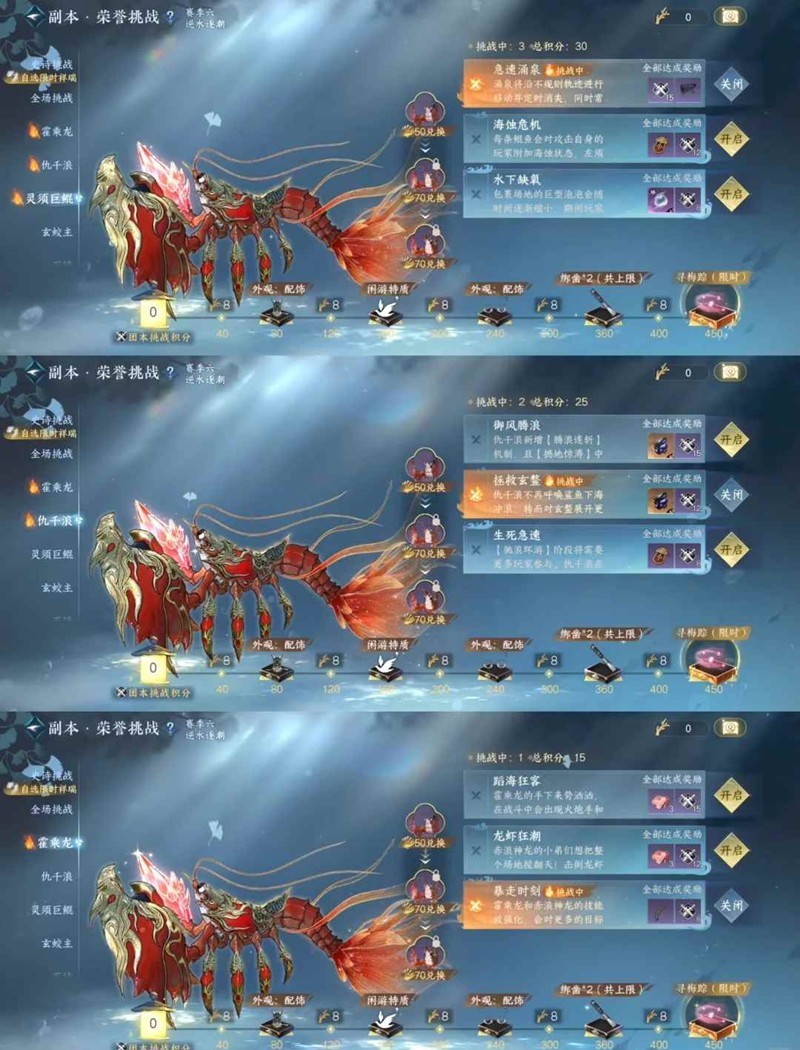 2.选择普通难度浅海,对话速小问,分别开启蹈海狂客,龙虾狂潮,需要两次完成,获得罗彩匣*6