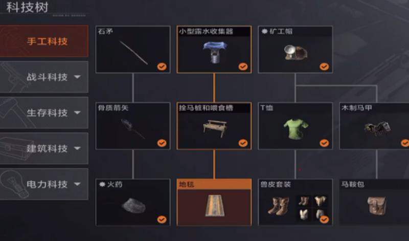 手工科技是新人玩家必须优先解锁的基础模块,它包含了石矛、石镐等原始工具的制作方法。掌握这些工具的制造,意味着玩家可以更高效地采集木材、石材等基础资源。没有这些工具的支持,资源获取效率将大幅降低,严重影响后续发展节奏。因此,在游戏初期投入资源解锁手工科技,是确保生存与建设顺利推进的前提。