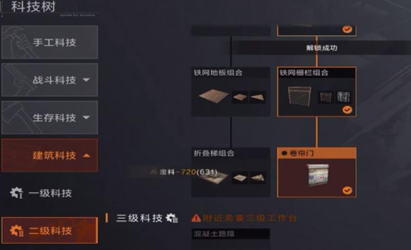 建筑科技直接影响玩家的居住环境与防御能力。初期只需少量投入即可建造木屋,提供基本的庇护所。随着进度推进,建筑科技还能解锁自动炮台和发电机等高级设施。自动炮台可用于防御敌对玩家或野兽侵袭,而发电机则为后续的电力系统和自动化设备提供能源支持。这一科技分支的持续升级,能让玩家的基地逐步迈向现代化与自动化。