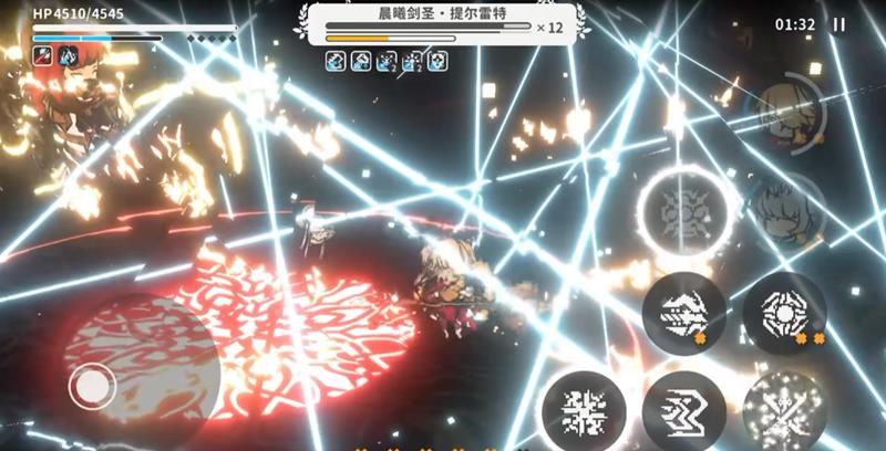 战斗开始后优先派出纳叶上场,其作为输出型角色具备强力的单体打击能力,一套连招即可削减提尔雷特一层血量。当提尔雷特血量降至16层时会释放第一次反击技能——跃起挥剑劈砍,该技能具有明显前摇,玩家只需及时闪避即可规避伤害。成功躲避后可继续让纳叶上前输出,保持节奏压制BOSS血量。