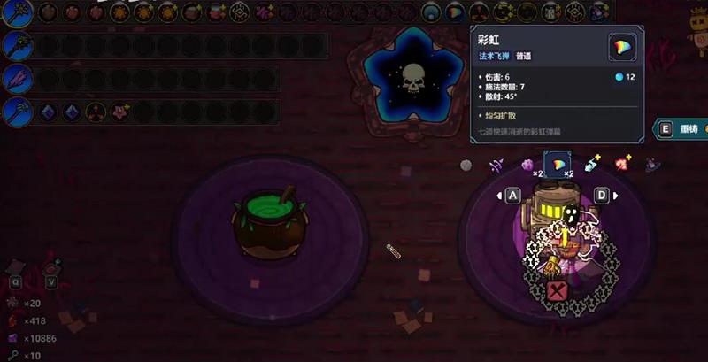 魔法工艺中的彩虹法术是一种以多弹道齐发为特点的高爆发技能,释放时会同时射出七道色彩分明的弹道,视觉效果如同烟火般绚丽。该法术的基础伤害为每发7点,若全部命中,单次可打出28点高额伤害,属于近距离爆发型输出手段。由于弹道数量多且覆盖范围广,彩虹在清理密集小怪时表现尤为出色,适合用于应对群聚敌人。其高频率的弹道输出让玩家在近战交锋中能迅速压制对手。