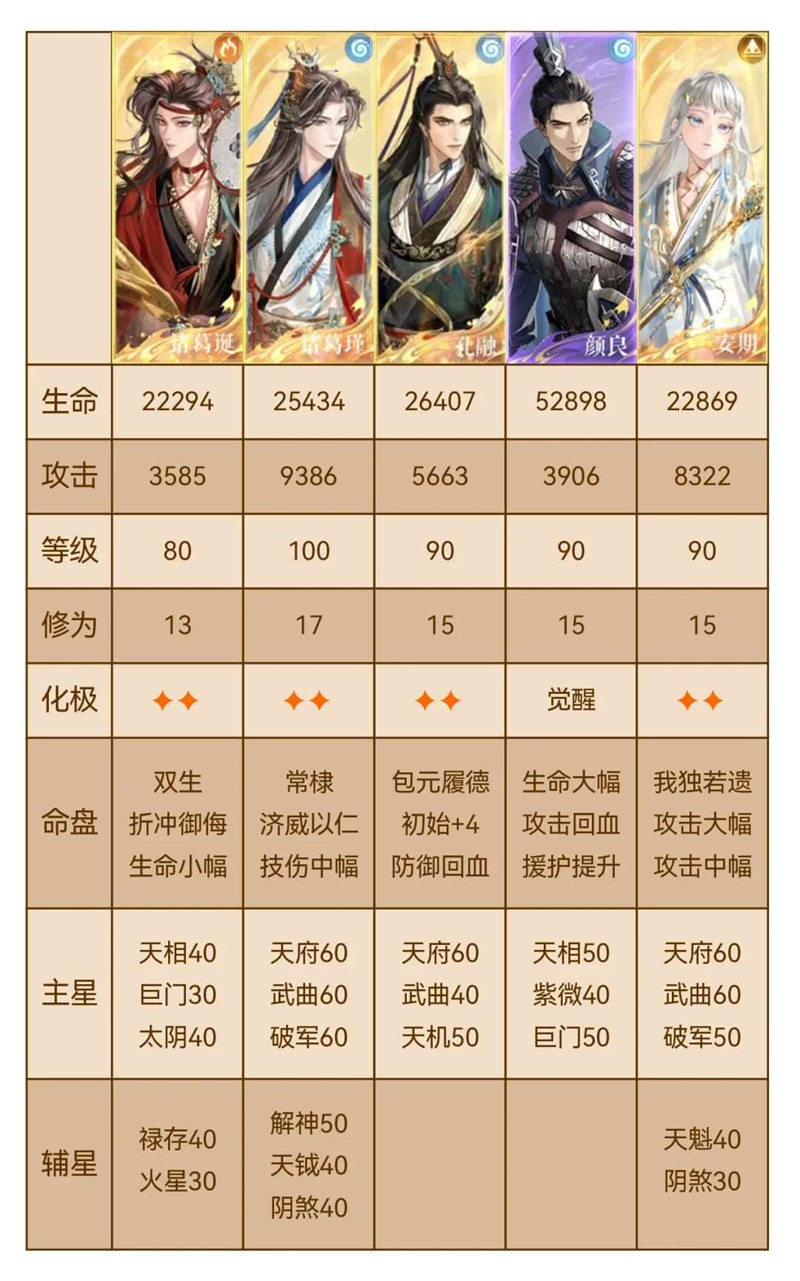 诸葛瑾 任意技伤输出盘,常济技更优,本关生存压力比较大 建议二星