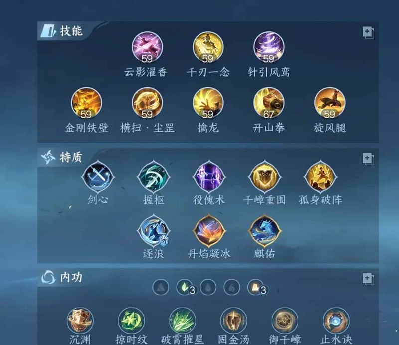 流派:铁壁+横扫/力劈+擒龙+开山拳+旋风腿【主T抗伤可以吧擒龙换狮吼稳仇,横扫也可以换力劈】