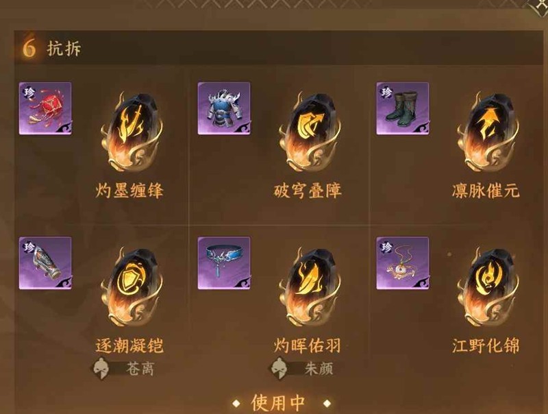 防具:逐潮(金)>破穹>承念>净露