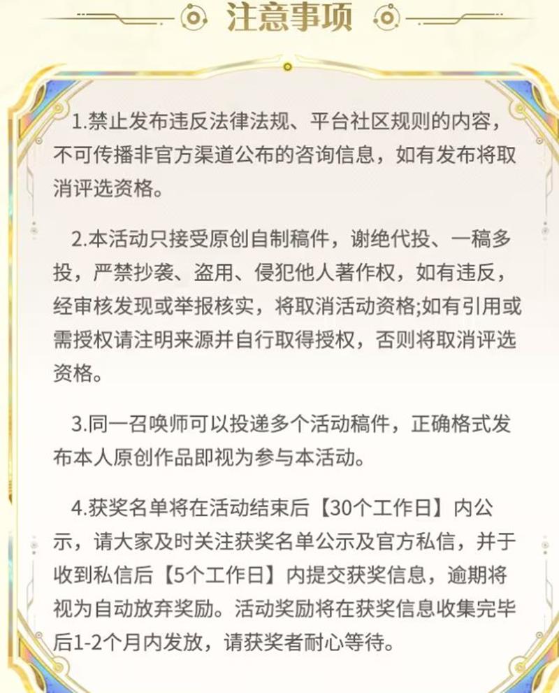 3.同一召唤师可以投递多个活动稿件,正确格式发布本人原创作品即视为参与本活动。
