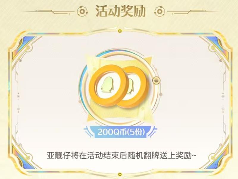 为了感谢玩家们的参与,官方将随机翻牌送上奖励,包括200Q币(5份)等丰厚奖品。亚靓仔将在活动结束后随机翻牌送上奖励,让玩家们的分享更加有意义。