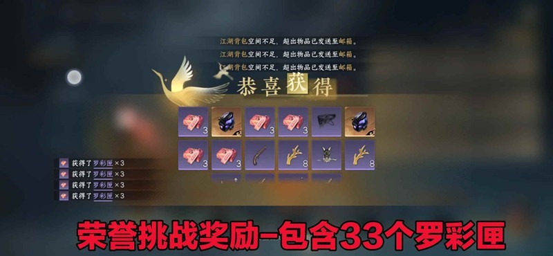 这些挑战打完即可领取2个绑凿和33个罗彩匣(注意,如果上赛年休闲/竞技已拿过绑凿就不能再领取了)