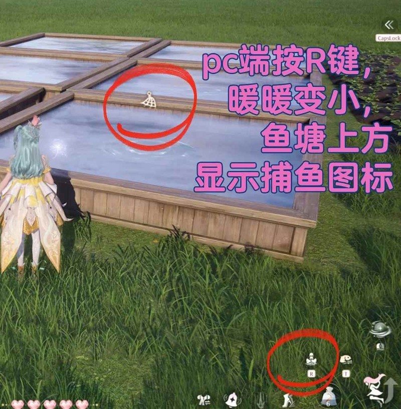 当切换为养鱼,再按R键盘选择大喵捕鱼,暖暖自然而然会变小;