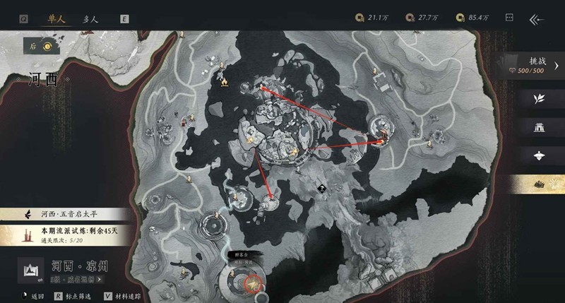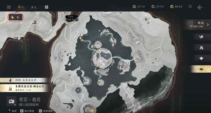 完成镇守后会进入第二张地图(风催凉州),跟之前的凉州属于两张不同地图,所有探索和任务都不相同,需要分开完成