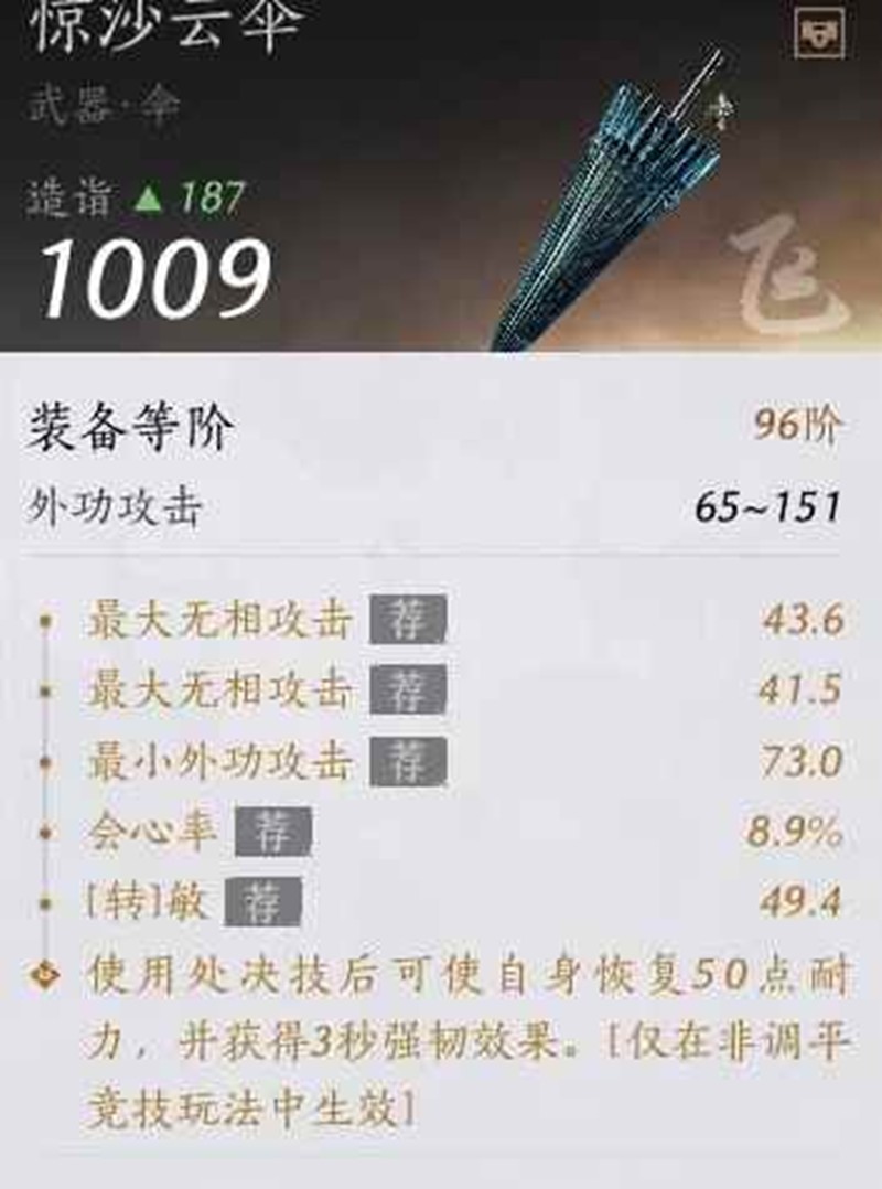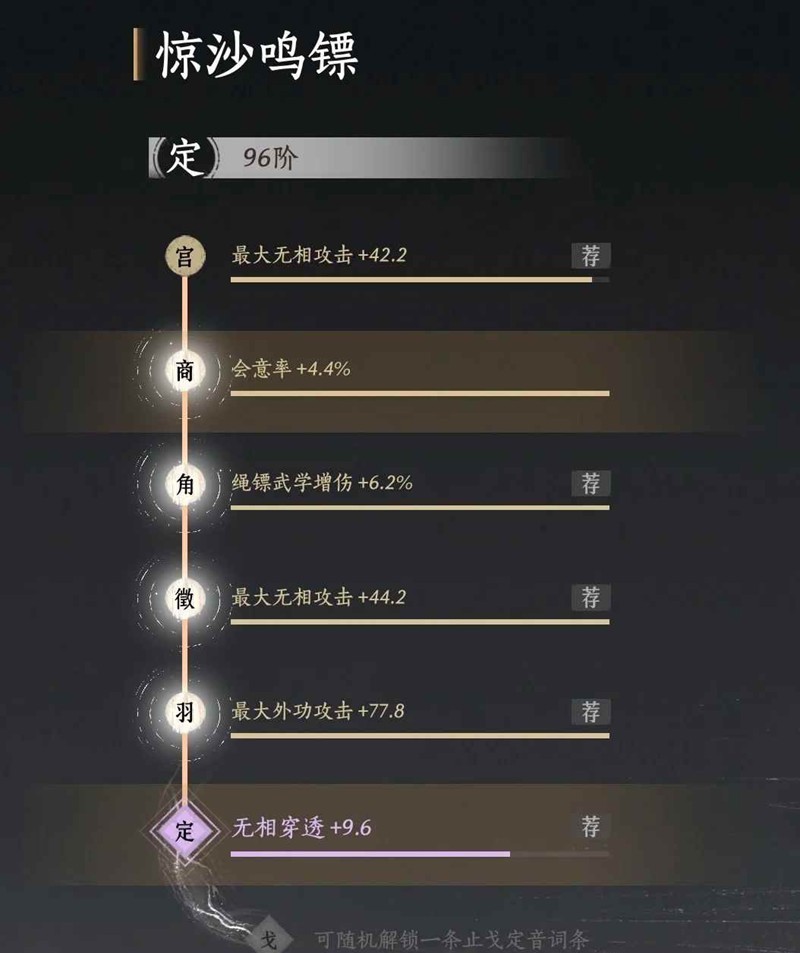 <蓄力技:镖鸣彻野>每命中一个单位,使自身获得0.5秒强韧效果,最多计入4人,命中强韧单位时获得双倍效果。每15秒可触发一次。