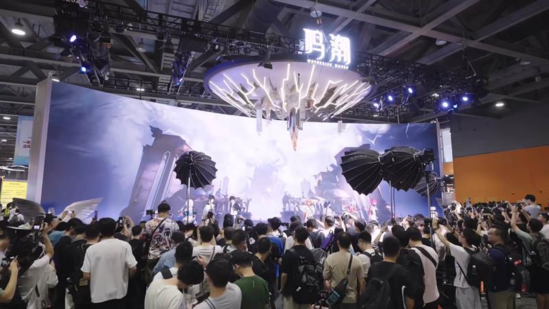 在回顾视频中,我们可以看到《鸣潮》展台以其精心布置的游戏经典场景,如今洲城、乘霄山、黑海岸等,为玩家打造了一个沉浸式的体验空间。玩家们穿梭其中,与角色COSER互动合影,仿佛置身于游戏世界。