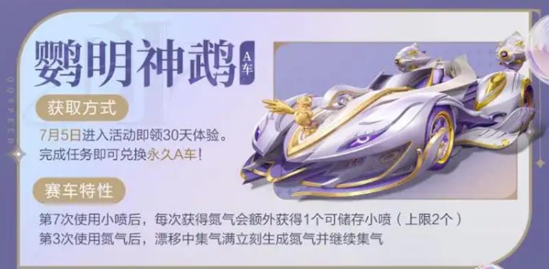 同时还能通过任务获取永久A车鹦明神鹉,这两款赛车都拥有出色的外观设计和性能表现。