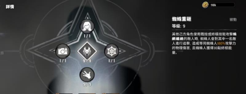 蜘蛛侠在漫威秘法狂潮中的定位是操控型战士,核心机制围绕“缠绕”状态展开。他的天赋技能与被控敌人紧密关联,当队友使用战斗技能或终极技能攻击处于缠绕状态的目标时,蜘蛛侠会自动追击其中一名敌人,造成相当于自身攻击力180%的伤害,并为全队额外积累30点终极能量。这一机制使得蜘蛛侠在配合队友时能显著提升团队输出节奏,但该效果在自动战斗模式下难以稳定触发,因此建议玩家在关键战斗中采用手动操作以确保技能衔接。