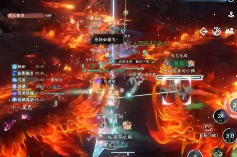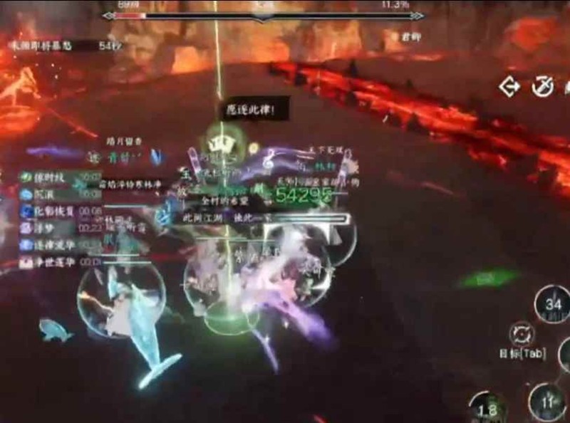 跳过去或者走得太快容易让子民碰到火圈掉血,奶妈这里注意抬好子民血量,只要稳稳走过去保证五个子民存活即可进入三阶段。