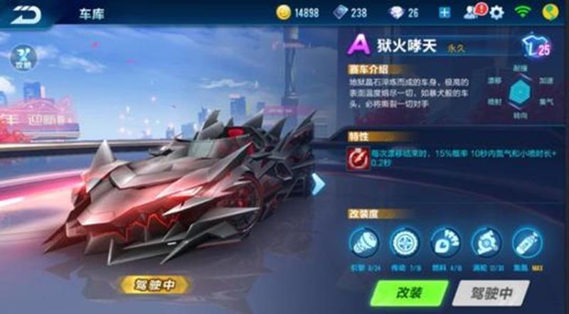 排在第2位的是狱火哮天。作为狗年限定A车,这辆车的性能十分出色,CWW喷速度可达306.3,改装后也能保持在305.8。虽然转向性能比黑夜传说稍弱,但明显强于黑闪猎影。由于车身较重,耐撞性能相当不错,驾驶起来非常稳定。新版本更新后耐撞属性有所削弱,但熟悉操作后依然能发挥出顶尖性能,因此成为很多主播刷纪录的常用车辆。可惜这辆限定A车已经绝版。