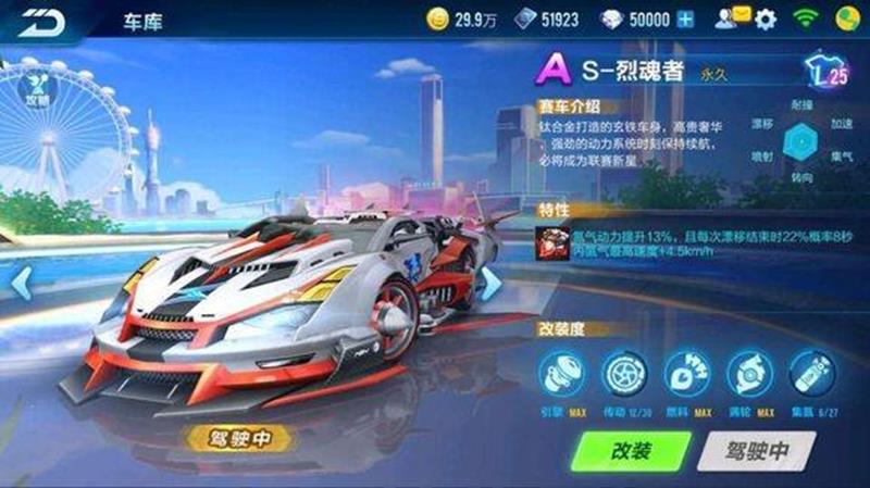排在第1位的是S-猎魂者。这是最新推出的五喷A车,让众多玩家感到兴奋。S猎魂者的六维图表现突出,各项属性都处于顶尖水平,特别是喷射属性非常强势。它拥有两个特性:13%氮气动力整体提升,以及每次漂移结束后有23%几率获得强化氮气,大幅提升行驶速度。现代感十足的外观搭配逆天性能,让它稳坐A车排行榜首。