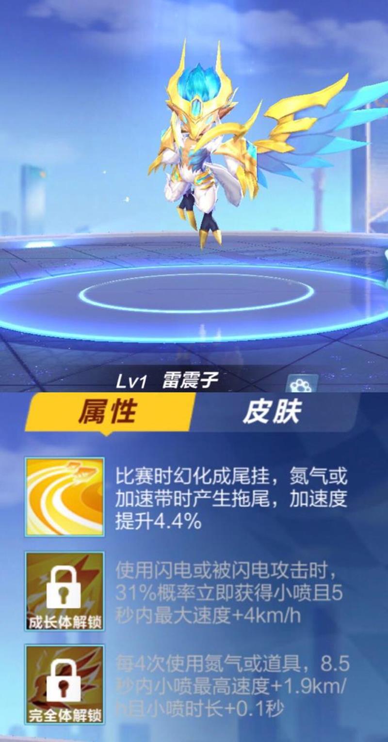 雷震子是一个相对全面的宠物,适合多种比赛模式。它的技能包括被闪电攻击时大概率获得小喷并提升至最大速度,每四次使用氮气或道具时还能在8.5秒内提升小喷至最大速度并延长小喷时间。这个宠物在竞速和道具赛中都能发挥稳定作用,性价比很高,目前也可以通过抽奖获取。