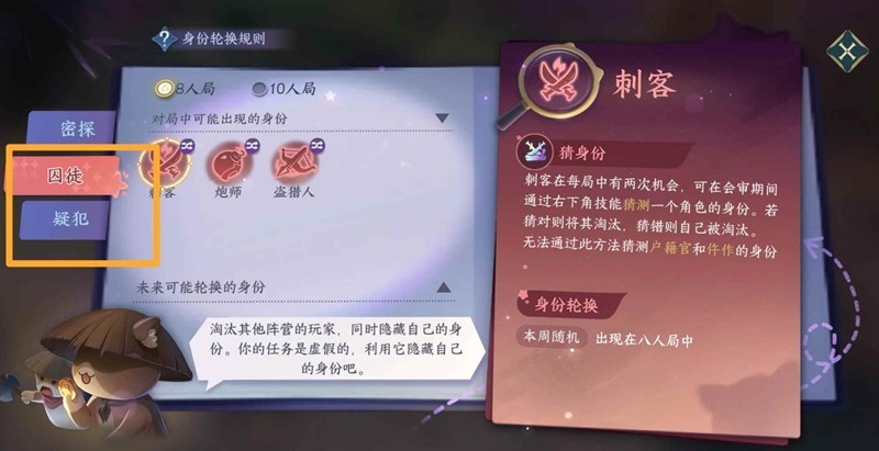 每局身份出现不一样,局内右上角图鉴可查看