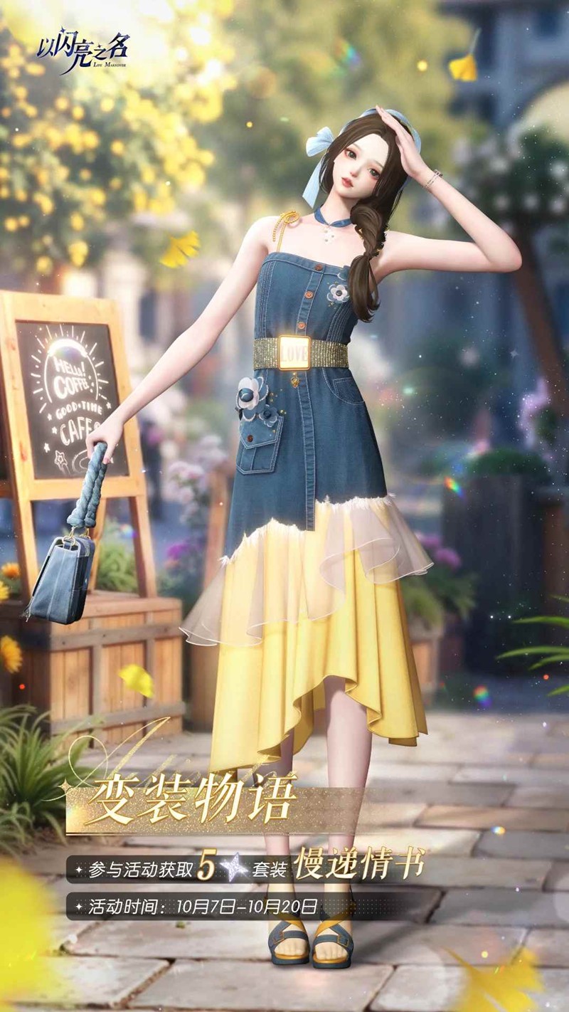 以闪亮之名变装物语微澜篇即将开启~参与活动可获取「慢递情书」套装!累积变装物语积分,可以获取限定五星套装【慢递情书】、拍照萌拍【赛博迷梦】、拍照相框【优雅序章】、钻石*100及多种材料道具奖励!一起来和小编看看吧~
