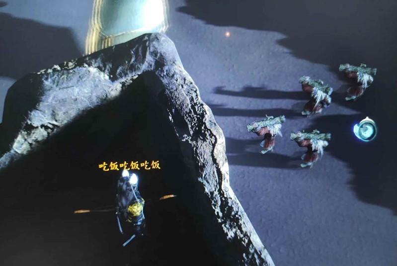 (大牛变小集火打,承伤把怪拉到小平台附近A处,出沙啸直接凌云踏上小平台不受伤害)