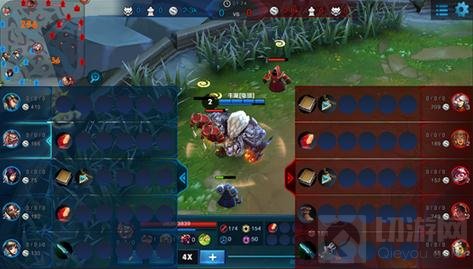 1)上方是计分板,分别记录了蓝红双方的人头数、推塔数、巨龙击杀数、团体总经济;小地图与战斗的小地图功能一致,只不过小地图上会显示巨龙和主宰的复活时间。