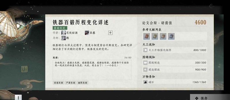 以上就是燕云十六声新门派墨山道,门派论文满分怎么做攻略的全部内容了,更多游戏资讯,攻略内容敬请关注切游网,您的支持是我们努力的动力!