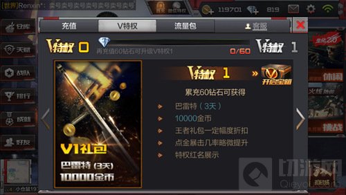 V特权1:要充60钻(6元)