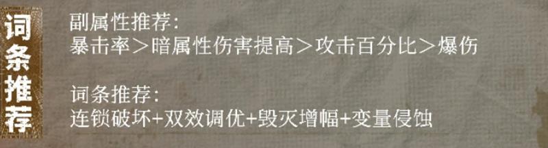 属性词条选择上,优先考虑暴击率,因范海辛的基础暴击伤害较高,提升暴击率能更稳定地触发暴击效果。其次推荐堆叠暗属性伤害加成,不仅能增强自身输出,还能为队伍提供一定的属性配对增益。爆伤词条也是重要补充,进一步放大其爆发潜力。