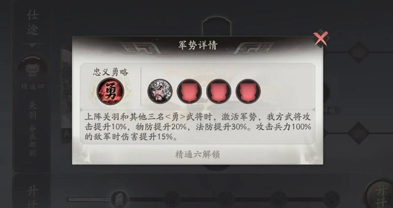 威震华夏为关羽的另一个主动技能,基础形态为对单体造成160%的高额伤害。若成功击杀目标,可为全队提供20%的攻击力加成,持续两回合。当武魂层数叠满后,该技能将转化为十字范围的群体伤害,兼具爆发与团队增益。面对高防御单位时,搭配破甲属性装备,实际伤害可突破300%,在推图与BOSS战中均有出色表现。