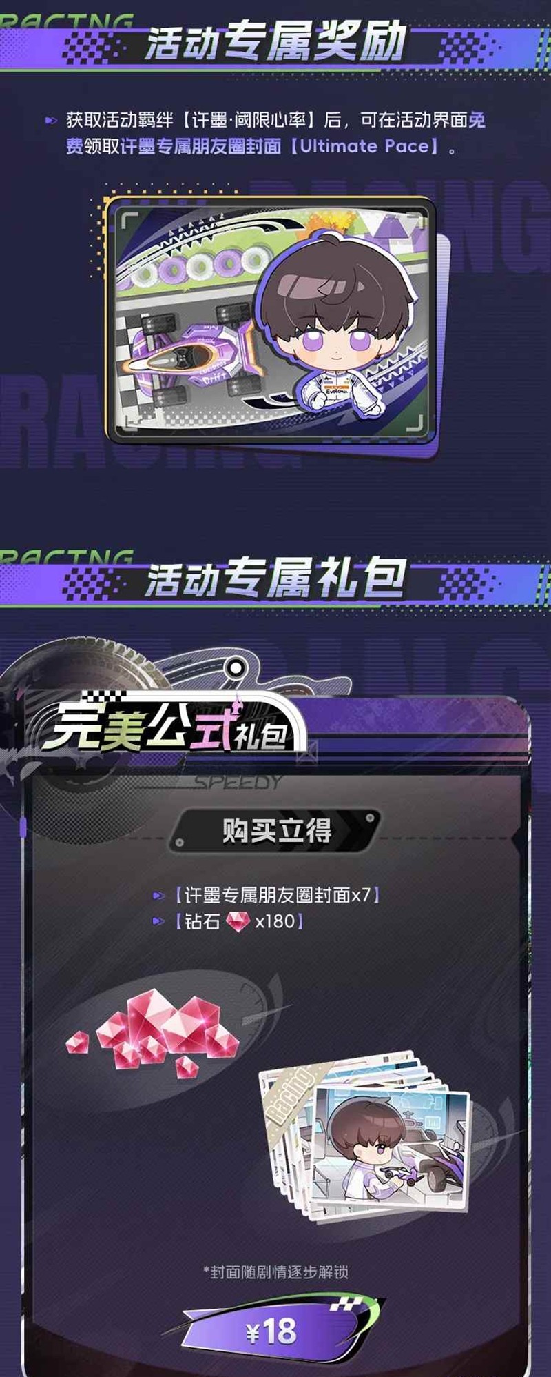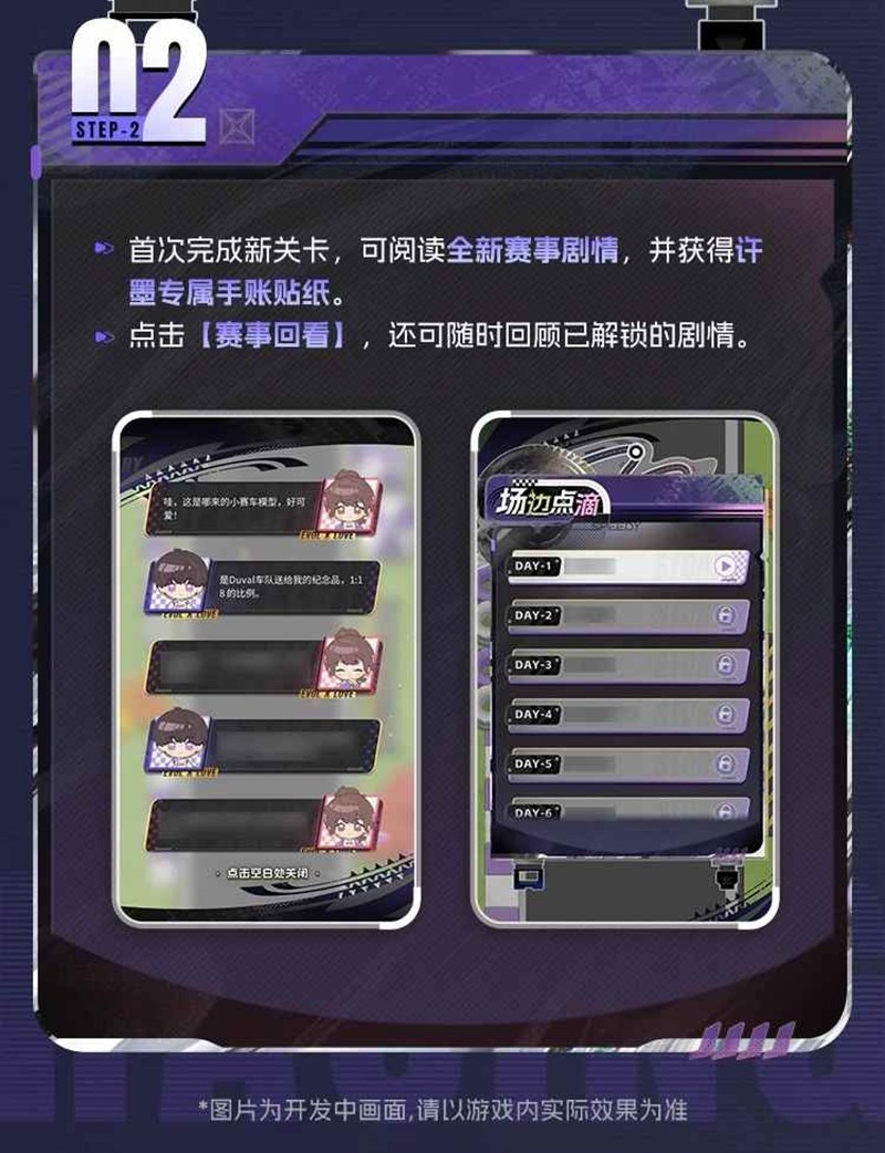 1.活动期间,首次完成新的赛车游戏关卡,即可阅读全新赛事剧情并获得许墨专属手账贴纸。