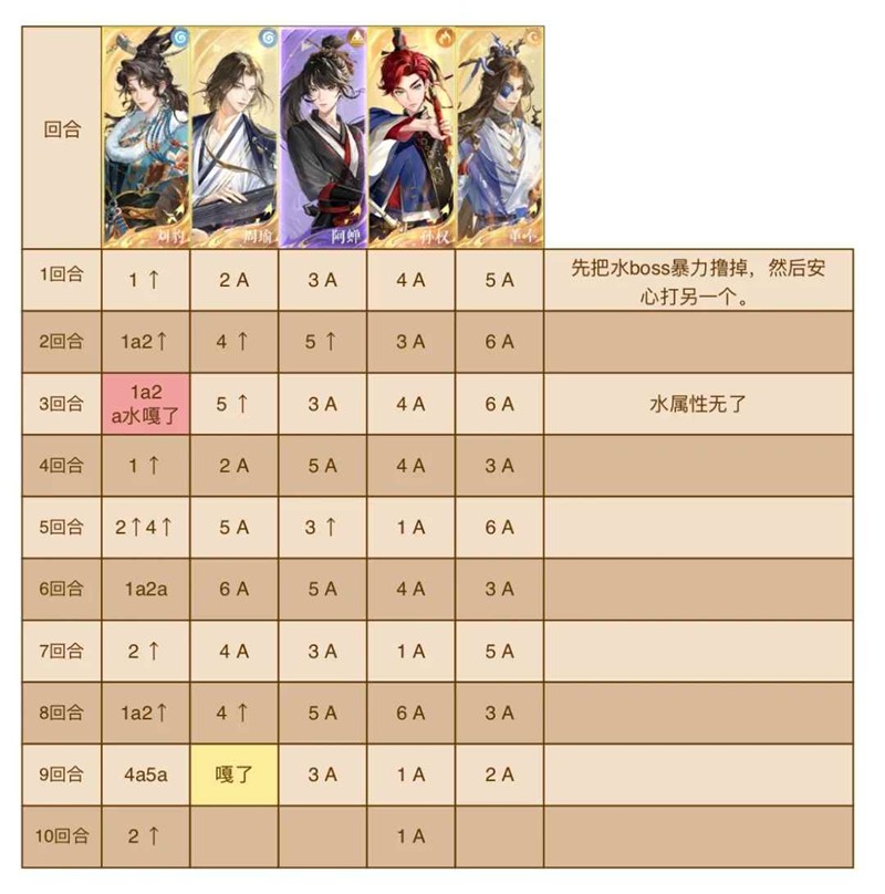 2个小怪都打死2次,再打boss。用刘豹周瑜爆发,对练度有一定要求,可以换配队,只要机制明白就行。
