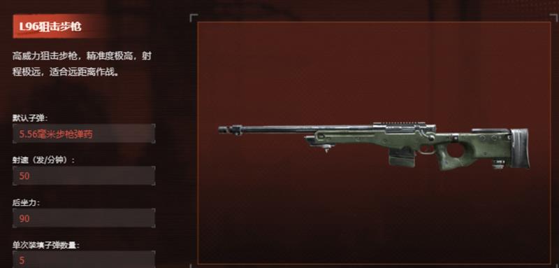 L96狙击步枪是失控进化中专为远距离作战设计的军用级武器,拥有极高的精准度和超远射程。虽然弹匣容量仅有5发,限制了连续射击能力,但其强大的单发威力和稳定性能使其成为伏击远程目标的理想选择。在敌人尚未接近时,L96可有效实施拦截与威慑,是高端对局中不可或缺的战略性远程武器。