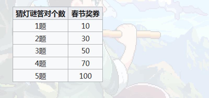 江城创业记灯谜共设有五道题目,答题地点分为两处:一处是俞关山,另一处是柴老夫人。每位玩家每天可参与一次灯谜挑战,若邀请好友组队完成,还能额外提升50点好友好感度,是社交互动中不可多得的增益机会。答对一题可获得10张奖券,答对两题得30张,若全部五题答对,则可一次性领取100张奖券。这些奖券可在春节限定商店中兑换赤血珊瑚、内功经验丹等稀有道具,四组赤血珊瑚仅需160张券即可兑换,性价比极高。
