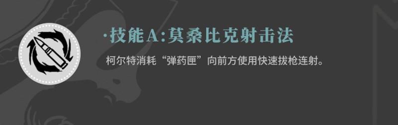 柯尔特的一技能为莫桑比克射击法,需消耗弹药匣中的储备值向前方发动高速连射。该技能的伤害与提前积攒的火力数值挂钩,因此在释放前需要通过普攻或其他技能进行充能。连射过程攻击频率高,适合用来打爆发或衔接连招。由于该技能依赖前置资源积累,建议在确保弹药充足的情况下使用,避免出现空放导致输出中断的情况。