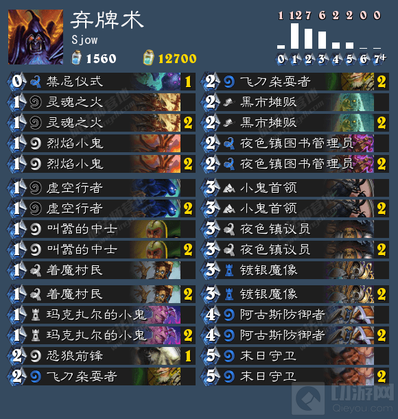 Sjow早期版本的弃牌术。这个套牌还是相对保守的,没有带魅魔和加拉克苏斯之拳。这个风格可能更加容易赢,但是我们也可以看看弃牌套路更深的卡组们能玩出些什么花样。