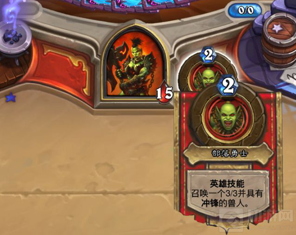 这个战斗时分为两个阶段的,第一个阶段是对抗一个兽人(也不知道是哪里冒出来的),打法基本是武器战,抢脸很凶,不过只有15血,比较容易击杀;第二个阶段是我们序章遇到过的马尔扎尔王子,技能和卡牌都是一样的,普通为召唤一个66地狱火,英雄则召唤2个。