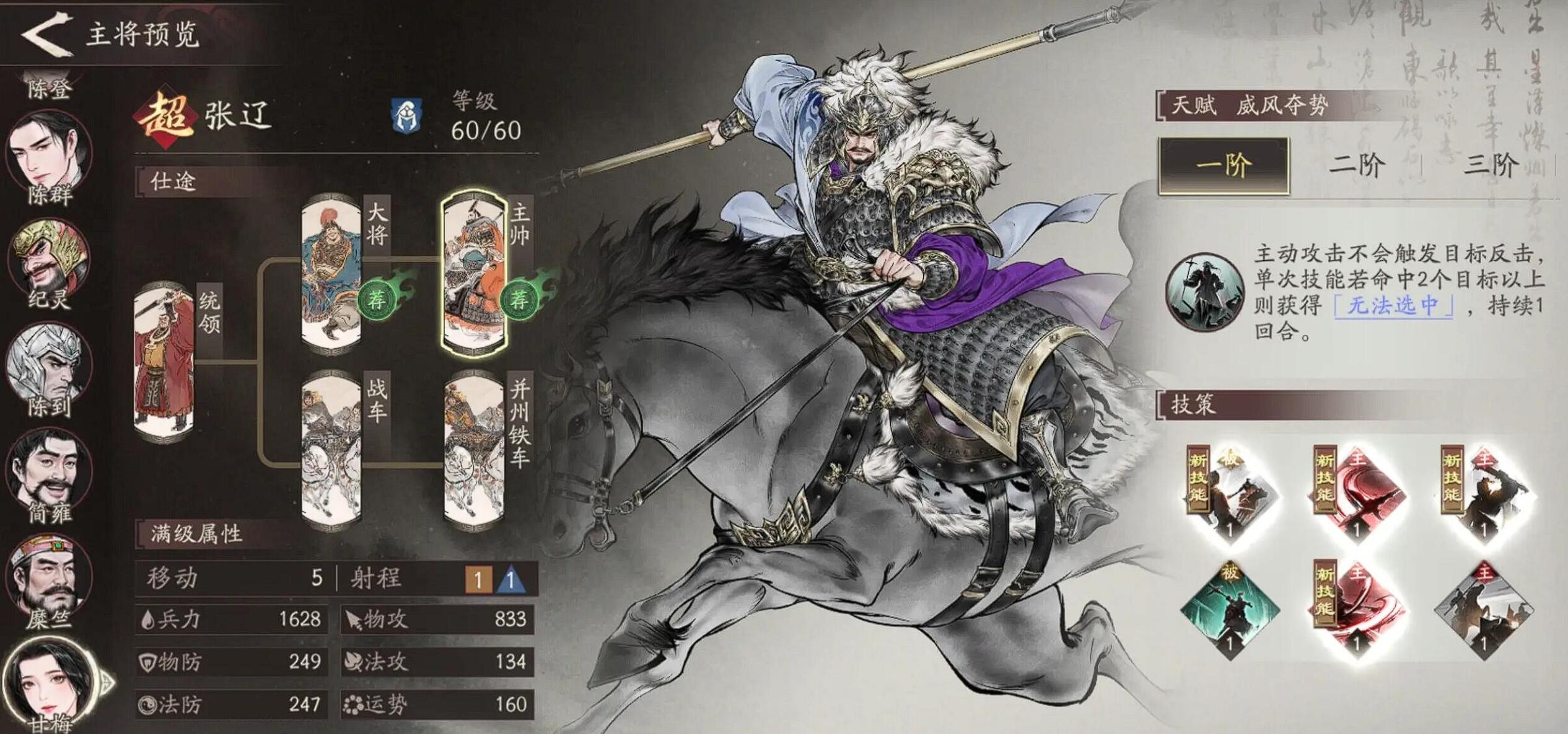 张辽在三国望神州中属于骑兵单位,具备出色的技能爆发和战场机动性。他在开荒阶段表现优异,转职后还能为队友提供增益效果,是骑兵阵容的核心选择。对于新手玩家来说,掌握正确的技能加点顺序至关重要,否则不仅影响输出效率,还会浪费宝贵的培养资源。