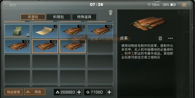 当玩家熟练度达到30级后,就可以在家中的装备制作机里制作皮革。将收集齐全的材料放入制作机,按照制作配方即可产出皮革。