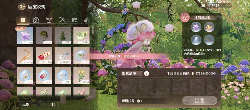 显而易见的结论是:目前尽可能不要卖任何白色蓝色品质的作物,而是主要卖紫色作物+紫色精粹(可以以织云木和叮当果树为主)其余小田/鱼塘/动物全部以建家所需为导向去生产
