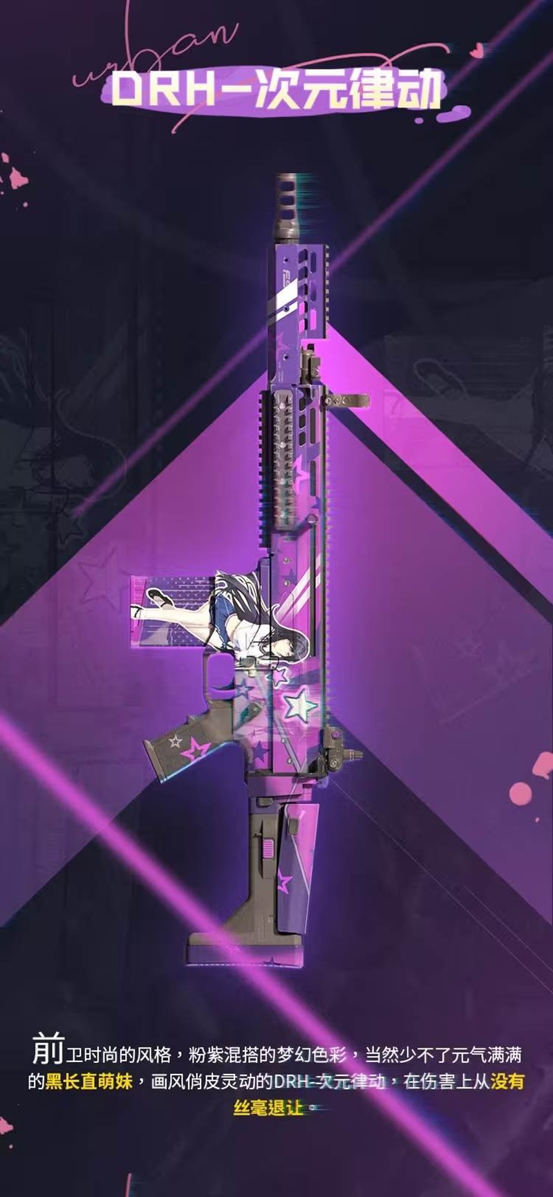前卫时尚的风格,粉紫混搭的梦幻色彩,当然少不了元气满满的黑长直萌妹,画风俏皮灵动的DRH-次元律动,在伤害上从没有丝毫退让。