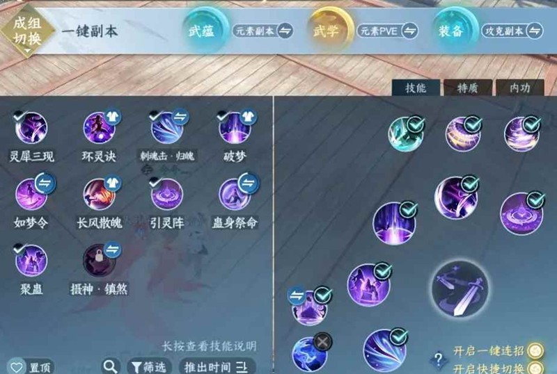 引灵阵-聚蛊一段-绝技-百家-群侠-刺魂击-双破梦-焚天一段入阵-马上接灵犀-打完上天挂一键连招即可。(或者双破梦-灵犀-焚天直接上天也是可以的。)