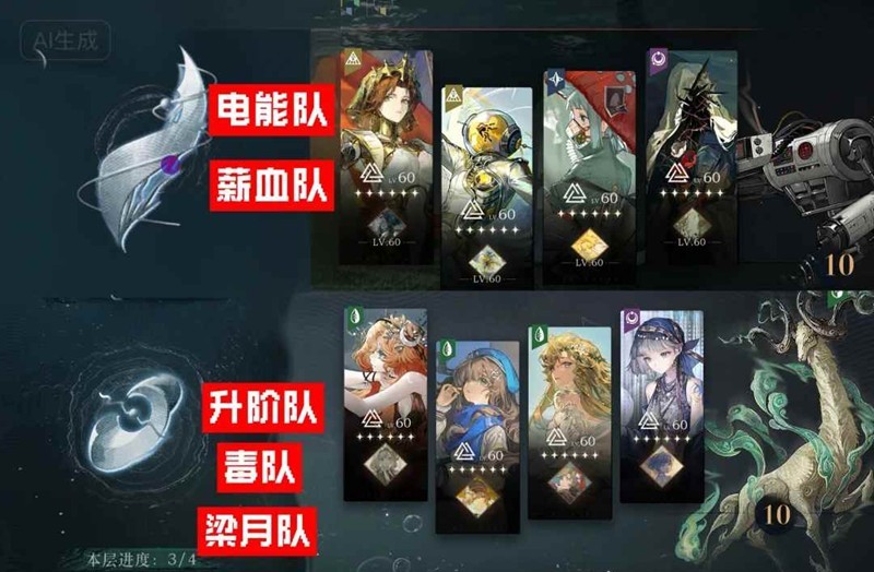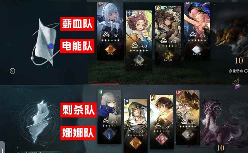 ●电能队:强度不必多说,暖好机就能把BOSS炫没,每一回合把电能叠上去,在可燃点的时候尽量是三阶段的状态,然后蘑菇开盾单保(有看其他攻略把电能留在了450-3,但是我这边450-3带的是薪血队)