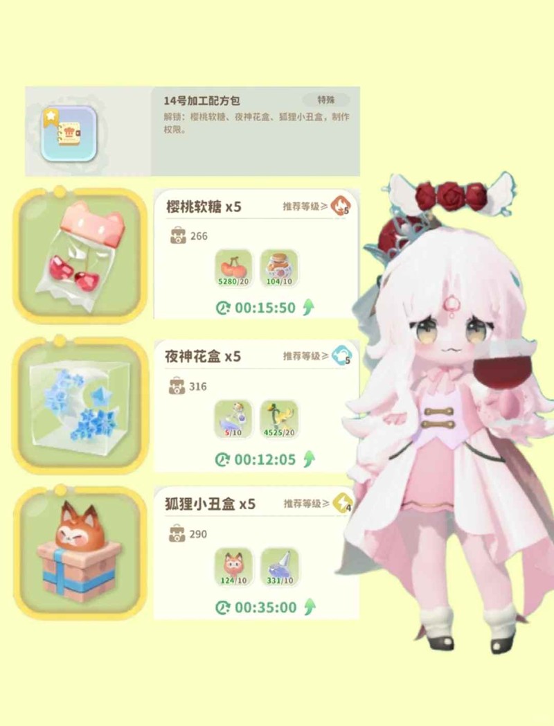 礼品机需要4420经营力,花束坊和糖果机需要4720经营力