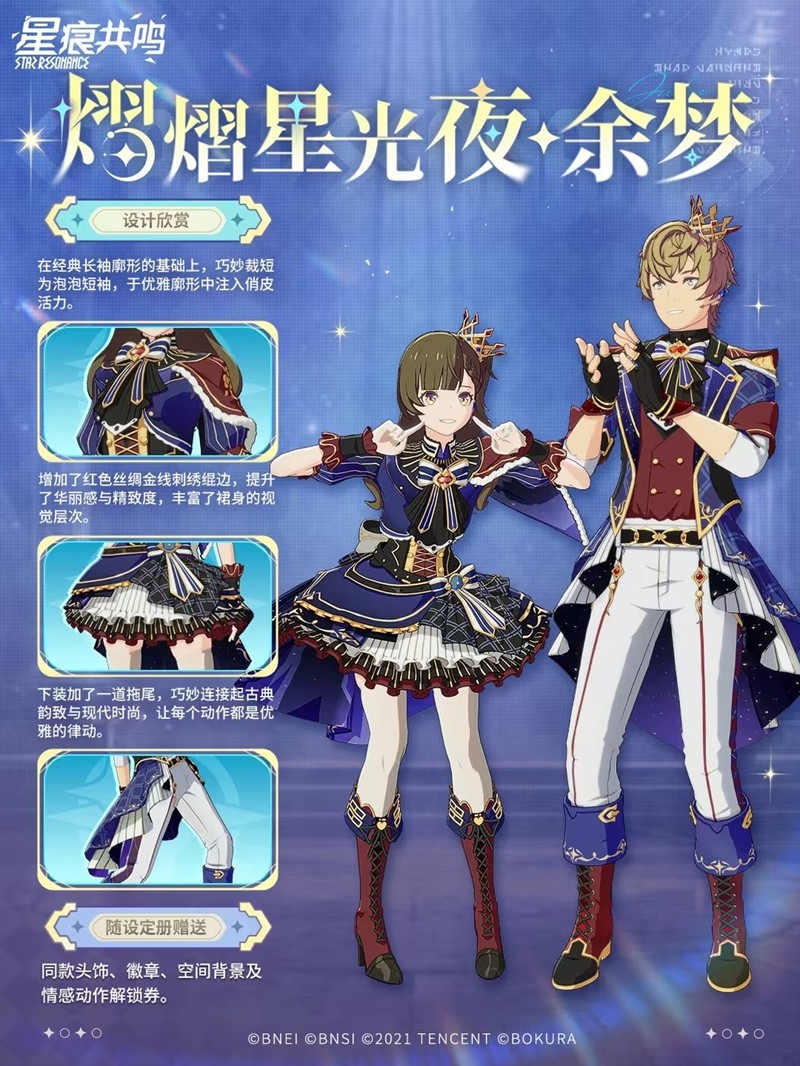 「熠熠星光夜·余梦」套装是为那些渴望在舞台上成为焦点的冒险者设计的。这套服装不仅外观华丽,而且细节精致,能够让玩家的角色在任何场合都能成为众人瞩目的中心。