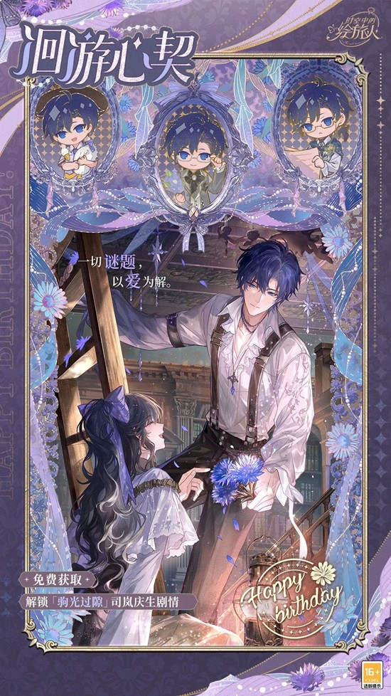 与司岚约好穿着今年的生日主题情侣校园装扮,开启[私人空间]约会,解锁他的台词互动;行至派对场景里,将触发2个特别互动动作,与他共度生日吧~