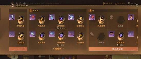 握抒、向天歌、寒光凌刃、御日吞天/剑心、锋镝夺魄、烈焰枪、都可以带,看自己号进攻分收益微调即可 。唯一注意携带御日吞天的话要把防御特质换铁臂。
